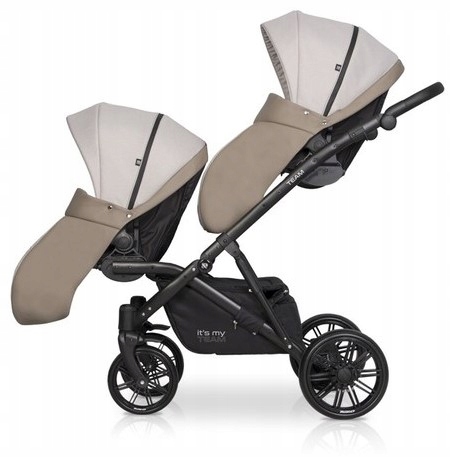 It is a tandem stroller for twins, so you will have no problems fitting it even in the narrowest door. Thanks to the fashionable style and the highest quality fabrics, TEAM will surely not go unnoticed during walks. The adjustable hardness of the rear suspension in conjunction with the inflatable wheels will make sure that no surface will be an obstacle on the way to your destination.