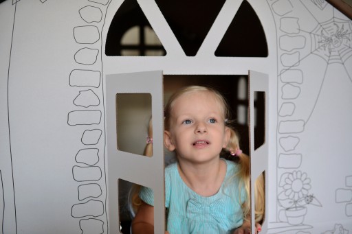 Найбільший дитячий будиночок на Allegro з білого п'ятишарового картону - дуже міцний.