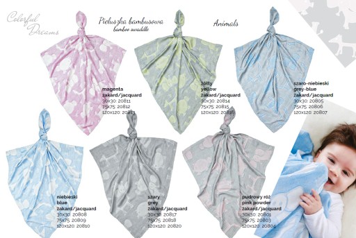 Красива ніжна унікальна пелюшка з бамбукової нитки BLUE-GREY ANIMALS з тисненим малюнком з останньої колекції COLORFUL DREAMS.
