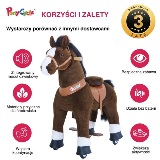 Ponycycle не потребує батарейок або електрики. Тому немає потреби у значному обслуговуванні. Натомість поні працює простими рухами за допомогою металевих педалей плюшевої ручки. Елементи розтягуються, але завдяки хорошій якості залишаються довговічними. Це підтверджує нашу віру в довговічність, стабільну конструкцію та використання високоякісних матеріалів і тканин для кожного циклу поні. Не дарма ручки відповідають суворим вимогам стандарту CE для дитячих іграшок. Гарантуємо безпечне водіння!