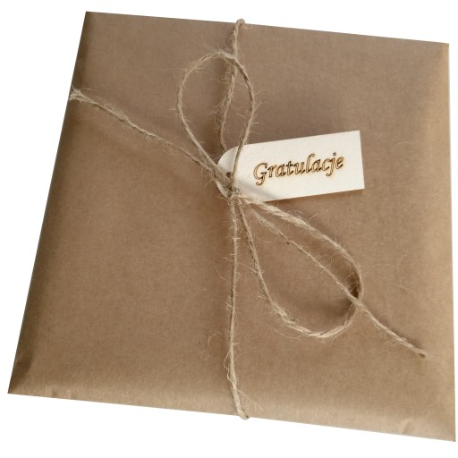 - джутовий шпагат + бірка з написом «Вітаємо».