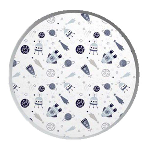 Космос - біла тканина покрита цікавим, сучасним малюнком, який зображує космос, насичений дрібними елементами. Космічні кораблі, ракети і планети чудово виглядають на класичному єдиному тлі. Вся галактика має світло-блакитні, сірі та темно-сині відтінки. Велика кількість елементів робить візерунок неповторним і привертає увагу не тільки найменших.