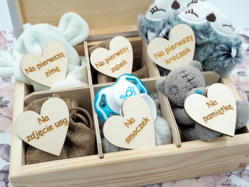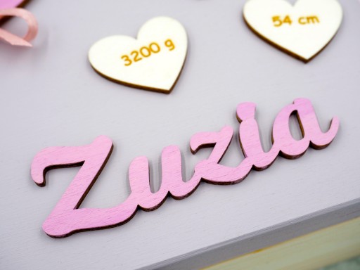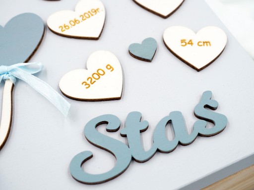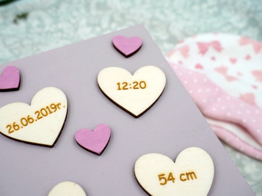 - введіть текст на сердечках на кришці - дату народження, час, довжину та вагу