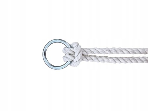 У комплект гойдалок входять мотузки з бавовни (розривна здатність близько 500 кг) товщиною 1 см і довжиною близько 140 см. Ви можете зменшити їх довжину, відрізавши мотузку під сидінням і зав’язавши її знову. Шнури закінчуються сталевим оцинкованим вушком для складання.