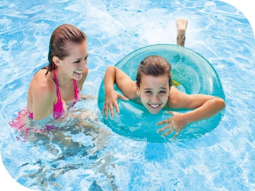 Прозорий блакитний басейн від Intex виготовлений з міцного та довговічного вінілового матеріалу (ПВХ).