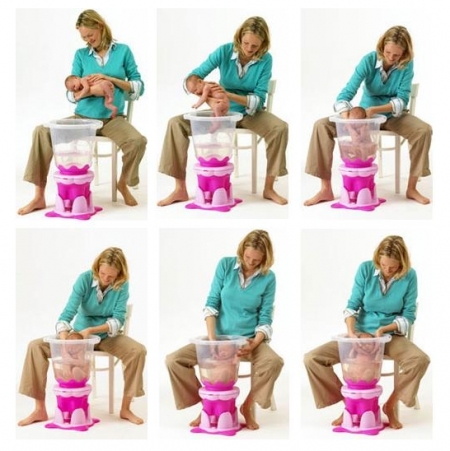 зручний і легкий у транспортуванні, він легкий, навіть наповнений водою, займає мало місця і ідеально підходить для подорожей, дозволяє спостерігати за дитиною під час купання, завдяки прозорому матеріалу відерце можна встановлюється на практичний табурет, і доглядальник може зручно розташуватися на стільці або на унітазі.