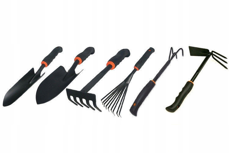 Zestaw poręcznych narzędzi ogrodniczych z serii DE LUXE, przeznaczonych do różnego rodzaju prac w ogrodzie.