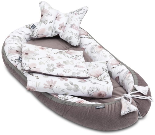 Весь набір виготовлений із сертифікованих матеріалів, безпечних для ніжної шкіри дитини.Ми поєднали преміальний шоколадний оксамит із тонким пастельним мотивом магнолії.Кокон оздоблений сірою окантовкою, що надає йому елегантності.