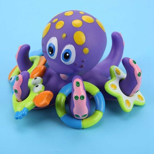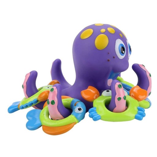 Іграшка для кожного малюка, який не любить купатися. Завдяки цьому кожна ванна буде цікавішою. Восьминіг має шість рук, на які можна вільно повісити плоскі елементи, що входять у комплект (5 штук). У набір входять різноманітні морські тварини: краб, риба, рак, а також зірка і маленька кулька.