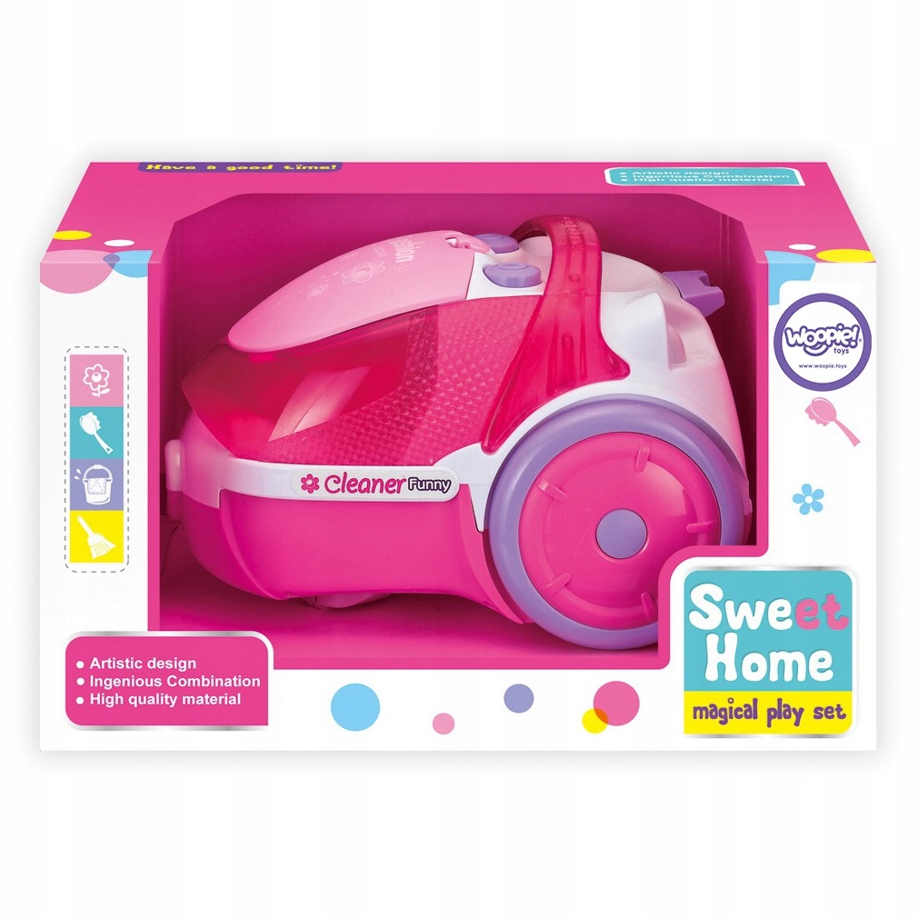 Różowy Odkurzacz od Woopie to idealna propozycja dla małych gosposi. Funkcja ssania oraz dźwięk sprawią, że zabawa w sprzątanie będzie jeszcze bardziej realistyczna. Wyjmowany pojemnik na zebrane rzeczy z łatwością można opróżnić. Wykonany z wysokiej jakości materiałów bezpiecznych dla dzieci. Idealnie sprawdzi się jako prezent, by pomóc dziecku w naśladowaniu rodzica, bo które dziecko nie chciałoby być dorosłym?