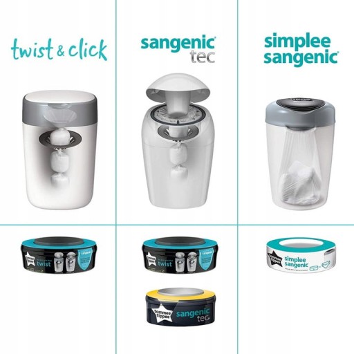 - В упаковці: 1 контейнер для підгузників Sangenic TWIST & CLICK, 4 універсальні заправки TEC.