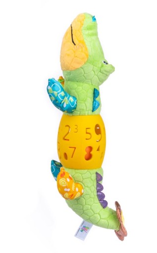 Crazy Crocodile в яскравих кольорах підніме настрій будь-якій похмурій людині. Його корпус виготовлений з матеріалів різної фактури, які допомагають розвивати когнітивні навички дитини. Гумовий животик іграшки прикрашений отворами різної форми, а всередині захований гримлячий м'яч.